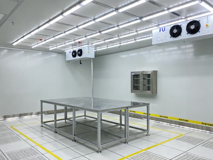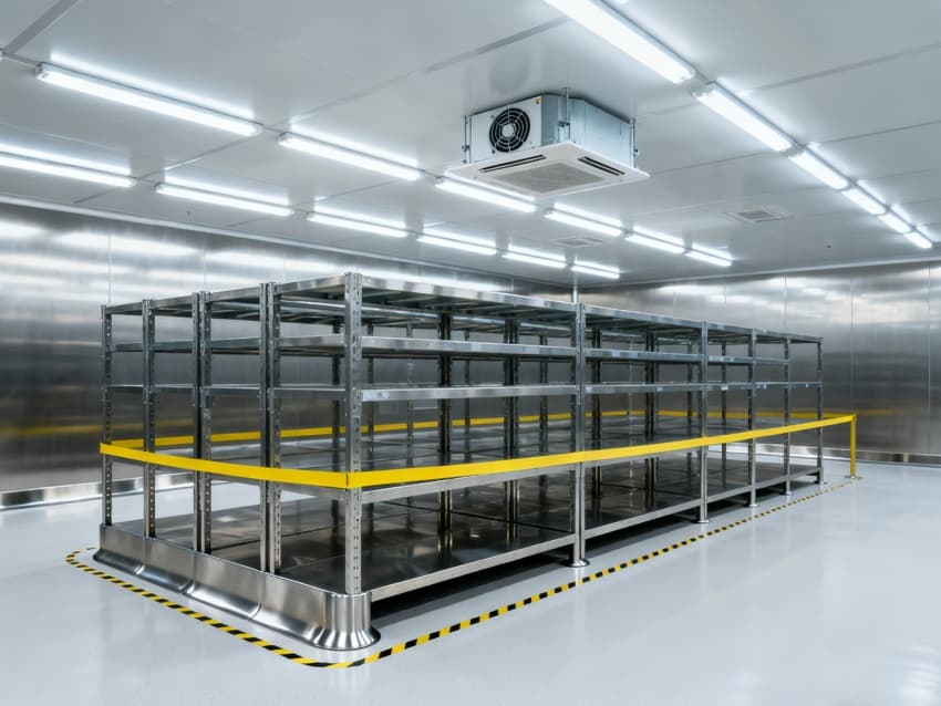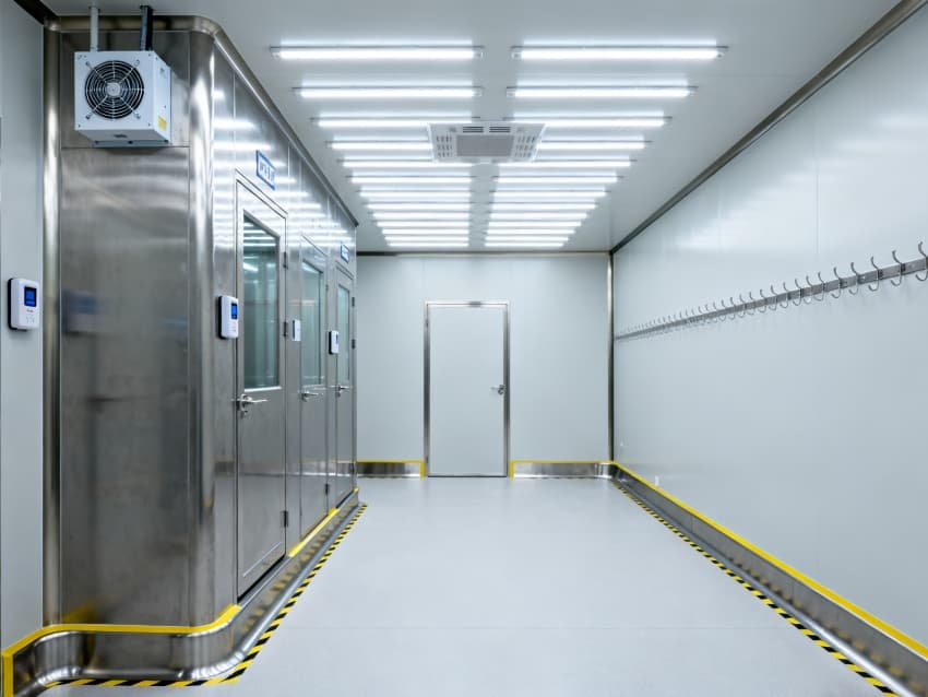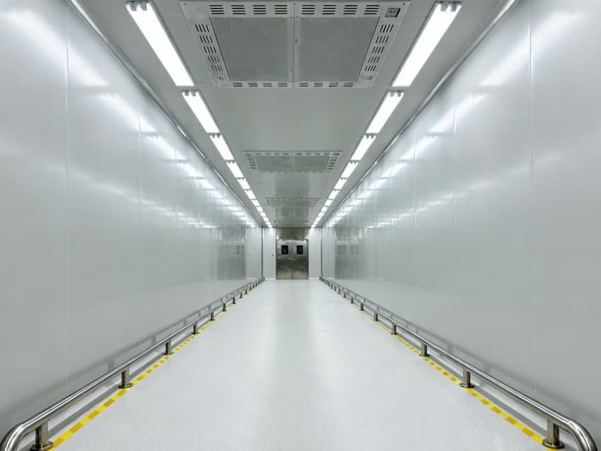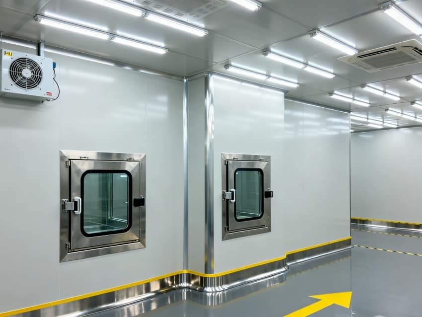 內(nèi)部按芯片工藝流程劃分光刻輔助區(qū)、晶圓預(yù)處理區(qū)、封裝過渡區(qū)等,各區(qū)域通過無塵傳遞艙銜接。車間嚴(yán)格執(zhí)行萬級潔凈標(biāo)準(zhǔn)(ISO8級),每立方米空氣中≥0.5μm微粒數(shù)≤352000個(gè),采用初效-中效-高效-化學(xué)過濾四級凈化系統(tǒng),配合垂直層流送風(fēng),每小時(shí)空氣置換25-30次。墻面為防靜電不銹鋼板,地面是環(huán)氧樹脂自流平材質(zhì),溫度穩(wěn)定在23±1℃、濕度45±3%RH,同時(shí)配備靜電消除裝置,避免微粒與靜電影響芯片良率,完全契合芯片生產(chǎn)嚴(yán)苛要求。