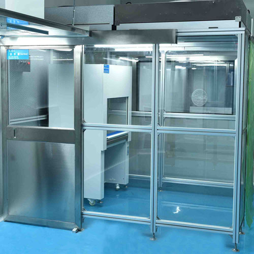 4、相對超凈工作臺,內部可用有效空間大;相對傳統無塵室,成本低、施工快、且對樓層高度低。